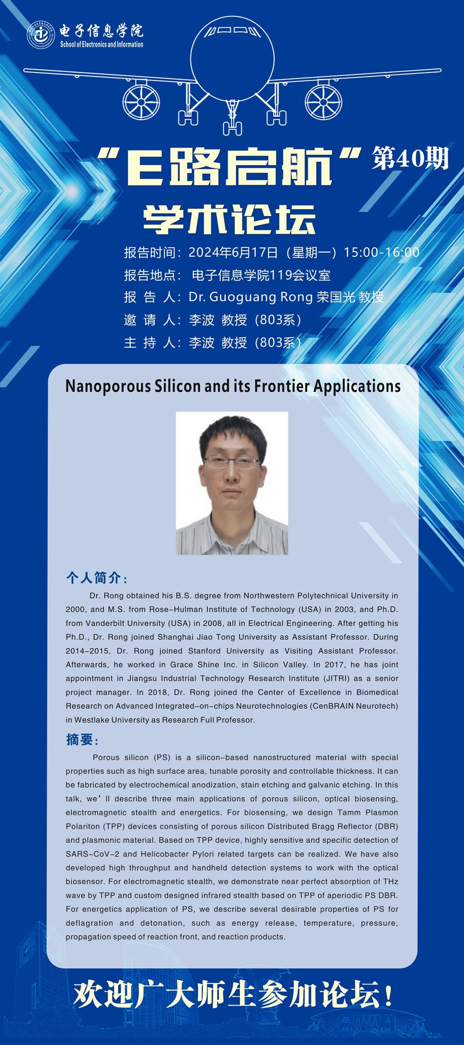 “E路启航”学术论坛第40期--Nanoporous Silicon and its Frontier Applications