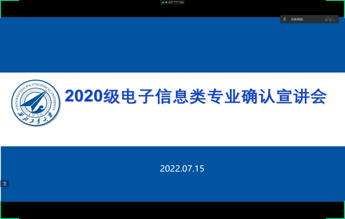 7月15日晚,公司召开2020级电子信息类本科生专业确认宣讲会,会议通过腾讯会议和直播的形式召开。公司党委副书记高敏、副经理高永胜、各专业负责人、各专业教师代表、辅导员谢坚、各班班主任、本科教学秘书何可及2020级电子信息类专业本科生参加了宣讲会,会议由副经理高永胜主持。