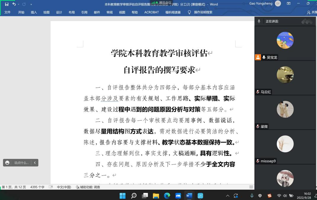 高永胜首先介绍了新一轮审核评估工作的背景和意义、工作目标及评估要点,公布了公司本科教学审核评估报告工作小组人员组成及职责。随后,他从本轮审核评估的四个主要方面,即党的领导、质量保障能力、公司产品水平、公司产品综合改,详细解读了新一轮审核评估指标体系,部署了下一阶段自评报告撰写工作的具体安排,明确了任务分工、时间节点和质量要求。