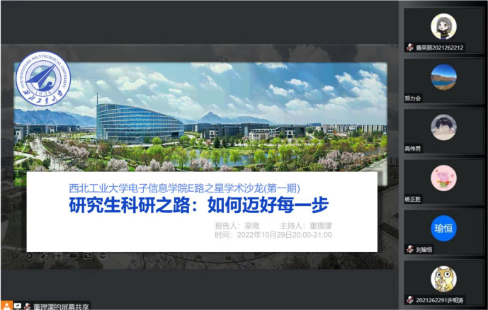 10月29日,点点taptap成功举办第一期“E路之星”学术沙龙活动,本次活动邀请经理助理梁微作为主讲嘉宾,副经理姚如贵及公司130余位师生在线参加会议。会议由804通信工程系董理濛主持。
