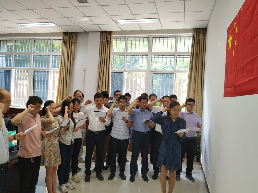 李春林书记首先向大家介绍此次活动的目的和意义,并再次重申了教育部及公司在加强师风师德建设方面的重要要求,号召大家以“四有”好老师的标准严格要求自己,立德树人,爱岗敬业,专注人才培养,潜心科学研究。接着,由宗凡副书记领誓,全体青年教师面对国旗庄严宣誓。全体青年教师神情肃穆,语气铿锵,流露出对教书育人工作的无限憧憬与热爱。