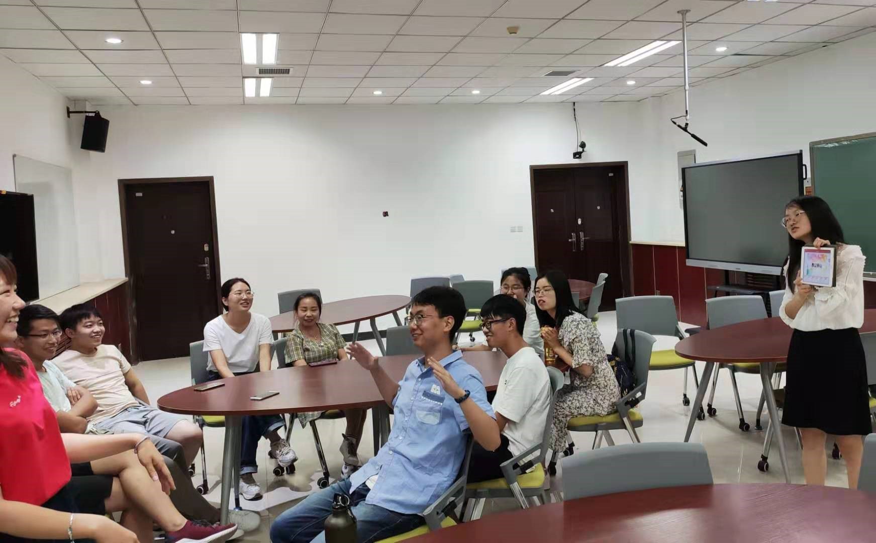 第三个活动是你划我猜,一个小组内在规定时间内答对的越多也就积分越高,主持人白蕊为各组展示着他们的词语,表演的人着急地手舞足蹈,其他人也都在绞尽脑汁地猜。活动的最后我们也为获胜的队伍颁发了一些小礼品,让大家也能分享获胜的喜悦。