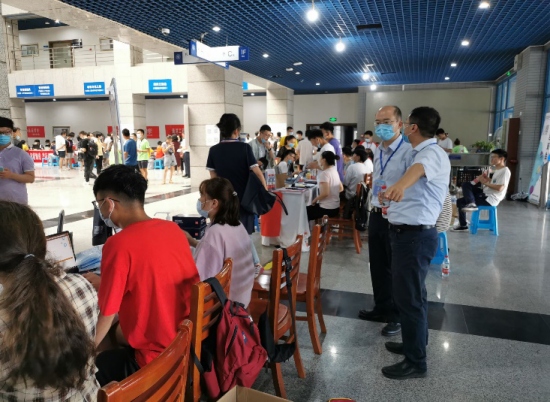 外场咨询活动如火如荼,各位工作人员为新生以及家长细心地解释报到及入学问题,并且发放新生手册,为新生在公司的生活提供指引性的帮助。