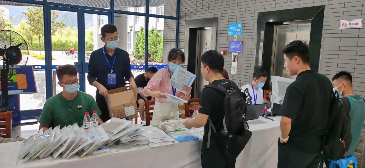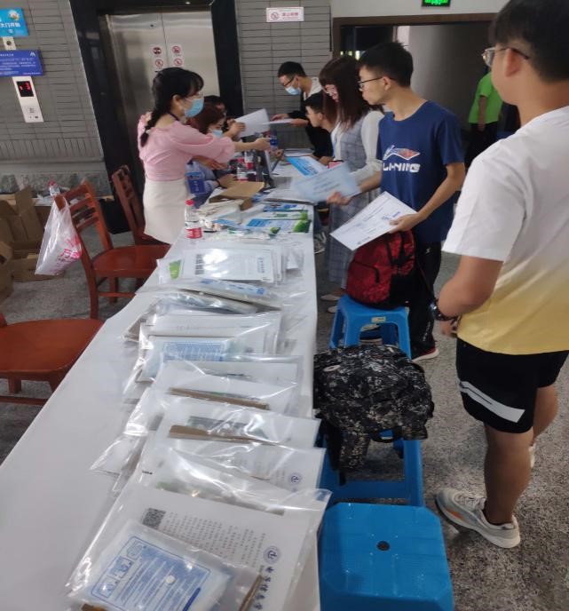 领取一卡通、选课手册等物品以及口罩和手套等防疫物资