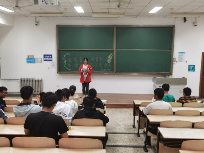 在班会进行过程中,班委号召大家要将厉行节约、拒绝浪费的要求贯彻到日常生活之中,每一餐都要减少浪费。通过不断增强节约意识,规范自己在节约粮食方面的行为。