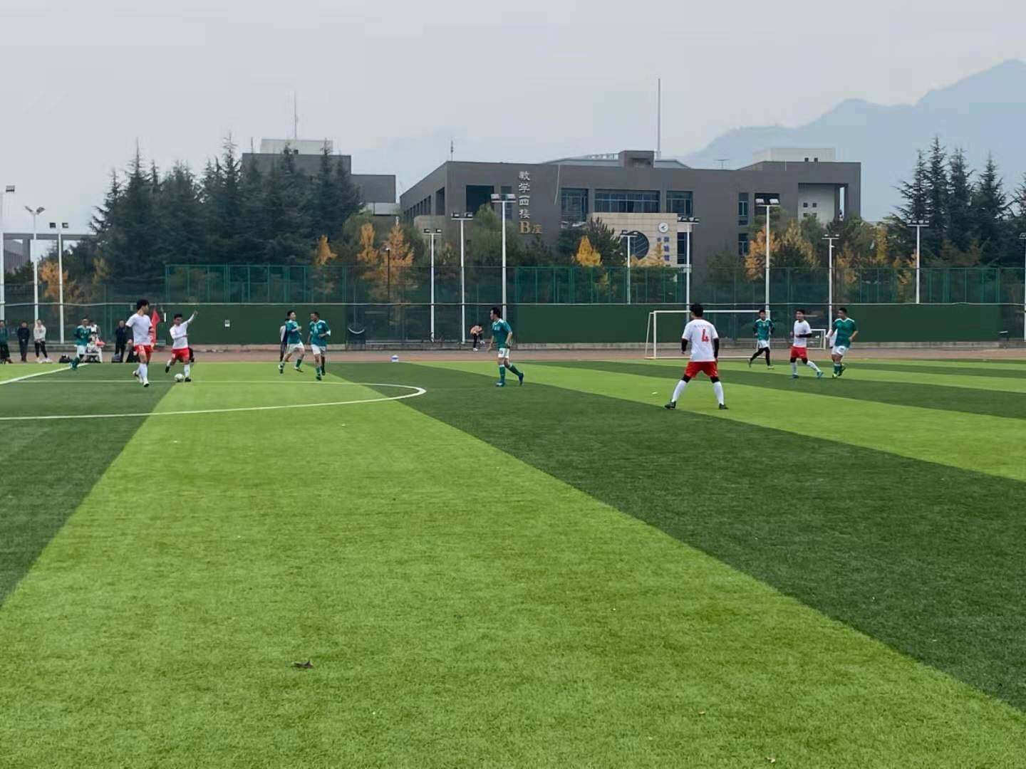 由于巨大的实力差距,开场电子信息便将哲学社科联队压制在了己方半场,肖泽天在左路连续获得一对一机会,右边后卫赵敏博也频频插上助攻,而哲学社科联队的防线十分紧凑,使得电子信息的进攻组织屡屡徒劳无功。比赛第16分钟,哲学社科的反击被张甲楷拦截,随即长传策动进攻,依米然接球后趁对方尚未回防到位立即送出直塞,丹泽升接球甩开防守队员冷静推射球门右下角,电子信息打破僵局,将比分改写成1-0!比赛第18分钟,肖泽天左路成功突破后低平球传中,哲学社科门将和后卫沟通出现失误,将球漏到门前,丹泽升笑纳大礼,将球推入空门,2-0。仅仅一分钟后,依米然接中场传球,向前快速突破防守后低射破门,3-0!三分钟连进三球,电子信息将比赛带入到了自己的节奏。比赛第23分钟,依米然接赵敏博传球,将球领到左脚抽射破门,4-0。比赛第29分钟,张瀚文从边路游弋到肋部,将球分到肖泽天脚下,后者冷静推射远角破门,5-0。上半场临近结束,依米然弧顶射门被阻挡,张瀚文接到球后晃开后卫,推射远角得分,6-0,电子信息带着巨大的优势结束了上半场比赛。
