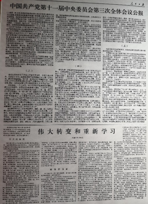 (图为中国共产党第十一届中央委员会第三次全体会议公报)