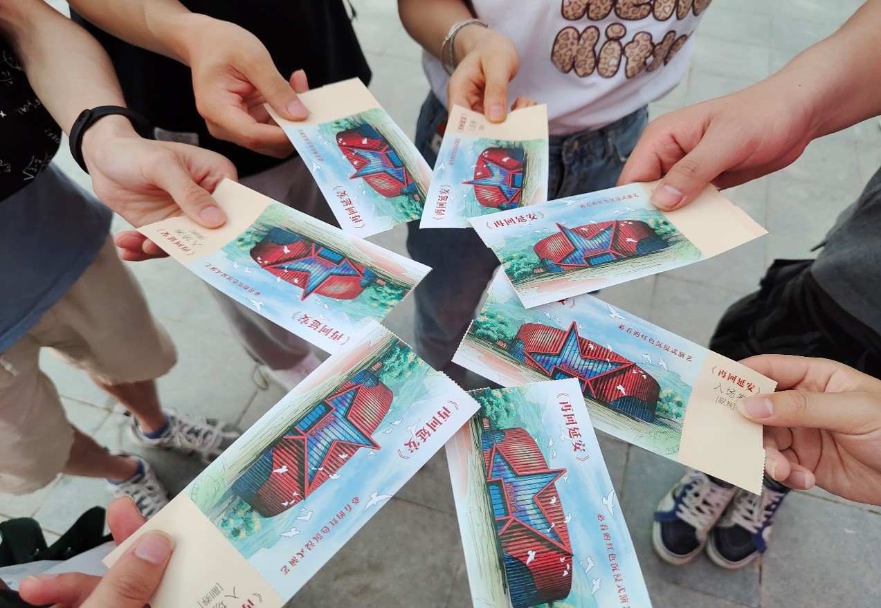 同学们通过观看沉浸式演出,重温了峥嵘岁月。万里长征路上爬雪山、过草地等场景的再现,使不少同学留下热泪。沉浸式演绎,把革命路上的真地、真事、真人嵌入舞台,让青年一代更直观地品学红色历史、追寻红色印记,用新思想培育新人,用延安精神培根铸魂。