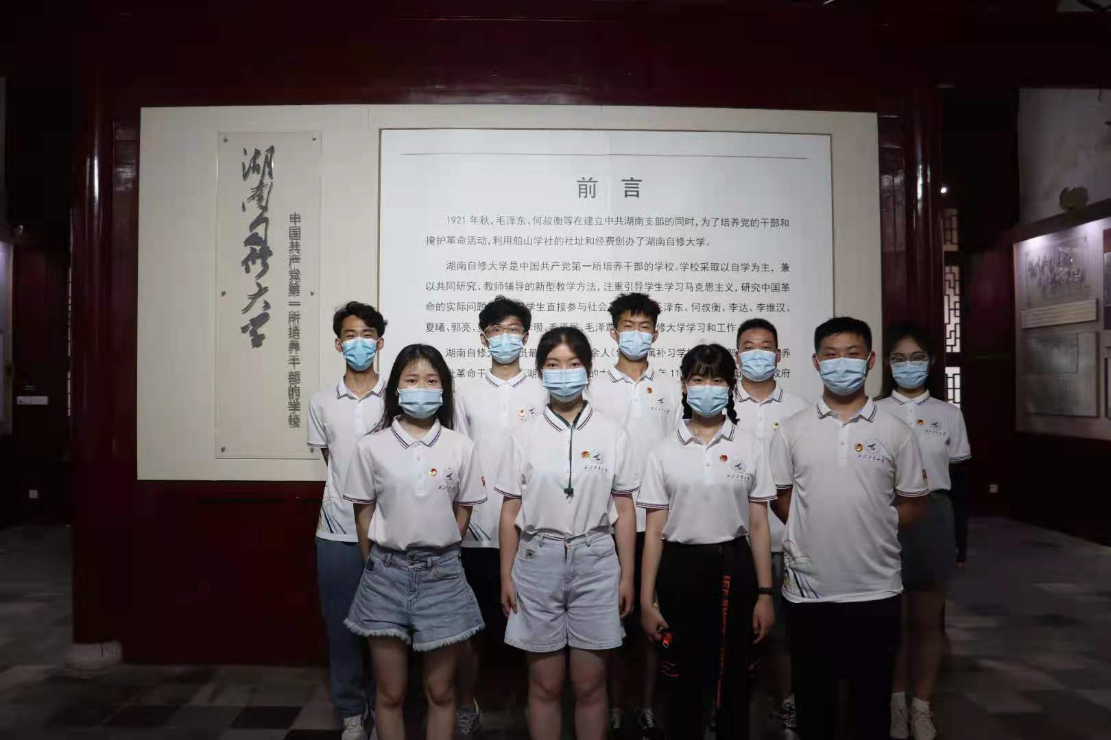 “汇人间群书博览者,何其好也;集天下英才教育之,不亦乐乎。”下午,实践队来到了湖南自修大学旧址,这是一座单层三进四合院,坐落于长沙市开福区中山路74号,在闹市之中显得安静肃穆。这是中共第一所研究、传播马克思主义、培养革命干部的新型公司,培养出一大批湖湘革命先贤,成就了“一群湖南人,半部近代史”的现象。石砖瓦缝之间,点点斑痕之上,仿佛还记录着当年的青年在这里对救亡路探索的点滴。我们置身其中,耳畔也似响起了许多年前革命先锋为中国发迹的声音,不禁肃然起敬,愈发对当下美好的生活感到珍惜。