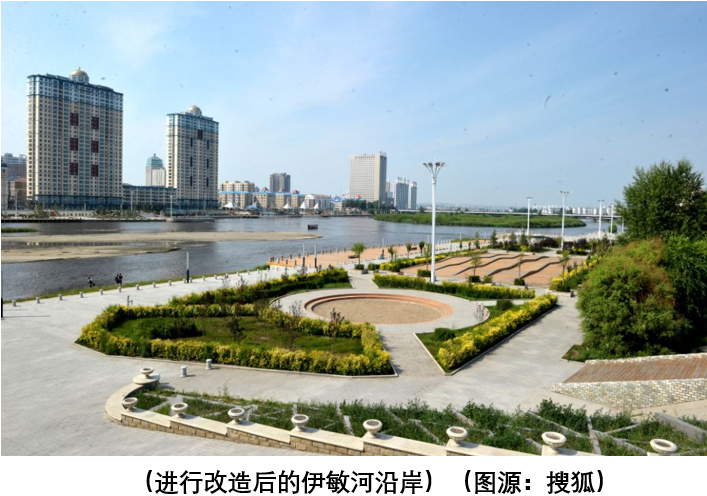 位于呼伦贝尔市海拉尔区的伊敏河景观带在过去杂草丛生,两岸外观狭窄单调。为进一步加强城市风貌建设,呼伦贝尔市委、市政府贯彻落实内蒙古自治区“8337”发展思路,于2013年启动伊敏河景观工程。改造后的伊敏河沿岸宽阔明朗,景观令人赏心悦目。