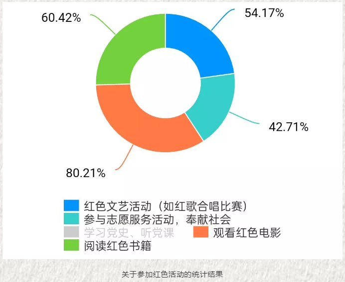 在本次社会实践中,实践队还在线上进行了有关红色文化发展建设的调查问卷。据问卷结果显示,绝大多数人参观过家乡的红色文化基地,认为家乡的红色文化氛围浓厚,也积极地参加红歌合唱等红色文艺活动。但也有部分人认为红色文化的活动形式较为枯燥,红色实践基地较少,应丰富活动形式,建设社区、乡镇的党史馆等红色实践基地。