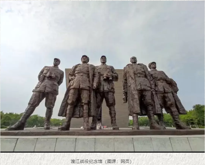 在渡江战役纪念馆前,五角星胜利塔巍巍屹立在胜利广场中央,其高达99米,以“九九八一”的寓意,代表了“八一”军队的胜利。从空中俯瞰,胜利塔呈五角星的形状,象征着军民万众一心、团结一致、解放全中国的信心与决心。百万雄师波澜壮阔地乘船渡江,一举突破国民党军的长江防线,夺取渡江战役的胜利,将浩然正气融入长江沿岸的土壤,烙印在鱼米之乡每一粒丰收的稻穗中。实践队员唐天骐感受到渡江战役中深厚的红色文化记忆,深刻认识到解放军战士强渡长江时无惧牺牲、甘于奉献的革命精神。