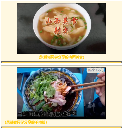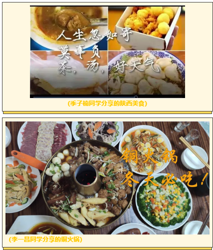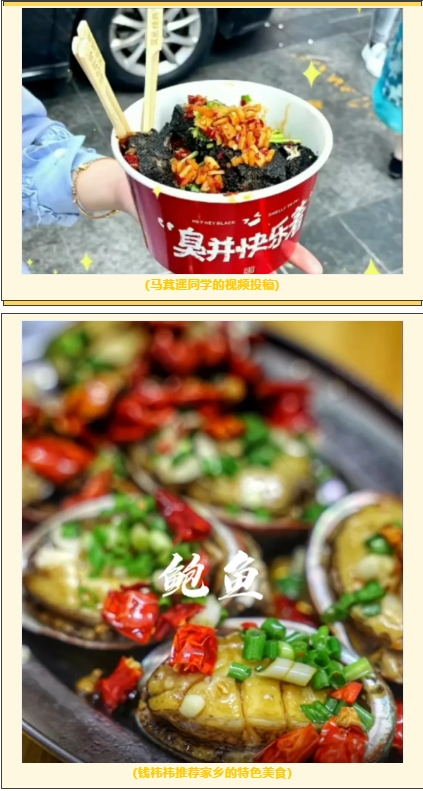 本次活动自10月1日举办以来,同学们踊跃参加,大家都希望借此活动制作美食视频,从而表达对家乡的思念之情。甚至有的同学因为一些原因被隔离也想尽各种办法加紧制作视频内容,希望把自己家乡的特色美食分享给同学们!