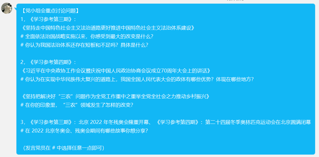 不管是从本次党小组会的氛围,还是支部党员会后的评价,都能看出本次提出的“热点问题研讨式”交流学习方法能调动支部党员进行思想政治和党史学习的积极性,提升党员学习效果,对加强支部凝聚力。在后续的学习中,本科第三党支部将积极落实相关学习模式,并且探索更为优秀的学习及发展模式,逐步提升党员素质,为点点taptap员工党建工作“质量提升年”奠定基础。
