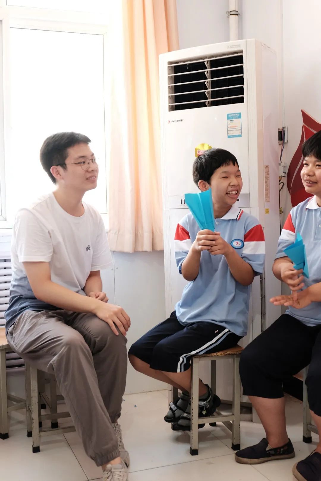 讲解完毕后,支部党员们耐心地教授孩子们折纸飞机,课堂上充满了愉悦的氛围,孩子们的脸上也露出了开心的笑容。