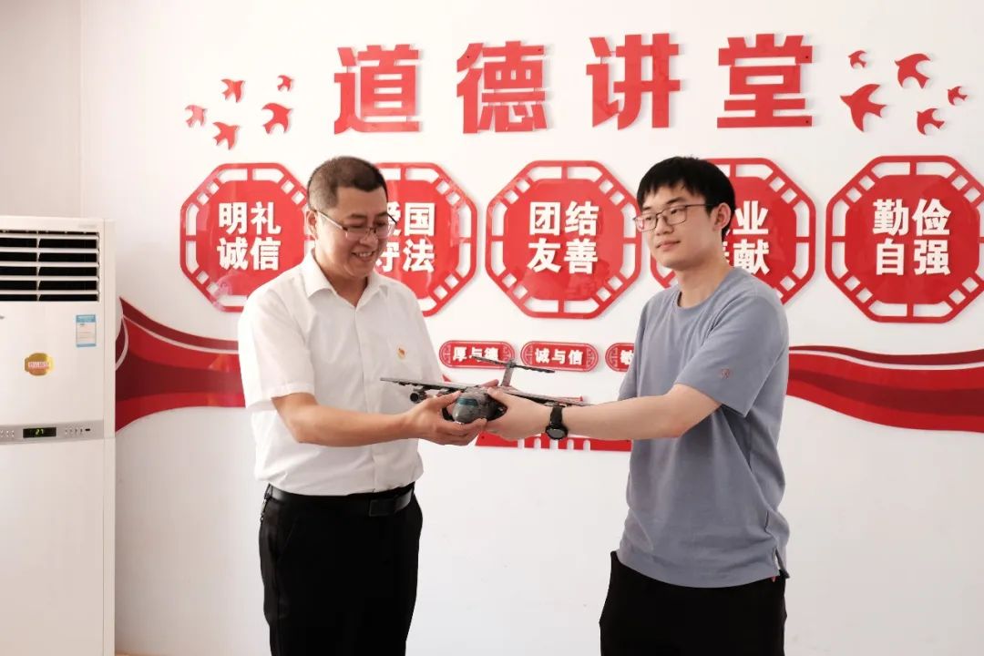 交流活动最后,本科第三党支部党员为韩城市特殊教育公司送上了歼-20和运-20飞机模型;韩城市特殊教育公司也为本科第三党支部送上了“关爱特殊儿童 携手共创明天”的牌匾。