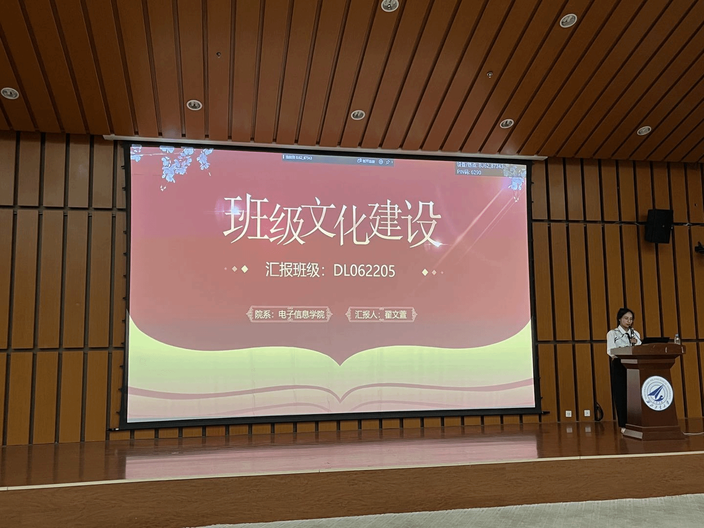 大赛共分为两部分,首先是班风、学风成果介绍。各个班级的代表用PPT和视频的形式展示了入学以来班级文化建设和学风建设的成果,向评委们阐释了各班班风、班训、班徽、班旗、班服等的含义并且展示了班级文化、学习活动的开展情况。各班的成果形式多样、丰富多彩:DL062203班建设了属于本班的班级网页,并定时上传分享校内新闻和班级活动,以作留念;DL062207班建立了属于班级的知乎话题,大家在话题里可以畅所欲言,共同为班级建设贡献力量。