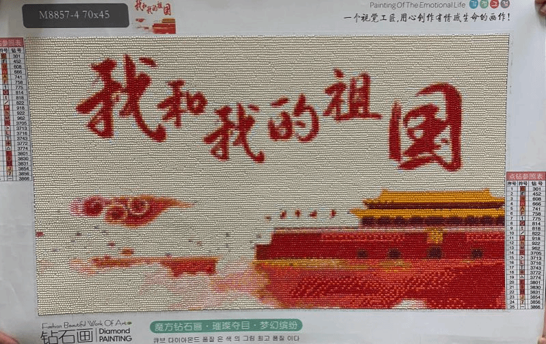 钻石代表永恒,钻石画寓意我们党永葆青春,永葆活力。闪闪的钻石,也代表我们浓浓的爱党爱国之情。虽然整幅钻石画的制作工程量浩大,但我们乐在其中。在我们眼中,那一颗颗钻石,代表的是每一个组成国家的个人,正如每颗钻石都有自己对应的位置一样,每一个人都在自己的岗位上为国家贡献一份力量,祖国才会展现出最美的姿态。