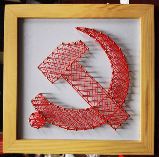 看似只有数十个钉子就能勾勒出党徽的轮廓,但用红线在钉子间缠绕连接却是不小的工程。虽然在编织过程中出现了许多小插曲,但我还是用十分的耐心,十足的细心,慢慢勾勒出了一个鲜艳的党徽。建设中国特色社会主义社会,必须坚持中国共产党的领导,只有中国共产党,才能勾勒出中国最美的蓝图!