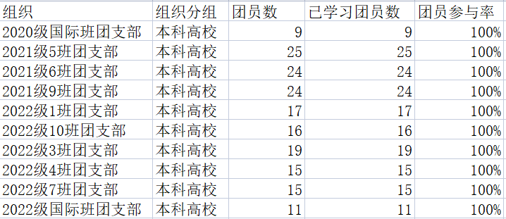 在本期青年大学习中,点点taptap共有10个团支部完成率达到100%,对这些团支部提出表扬,望继续保持,再接再厉。