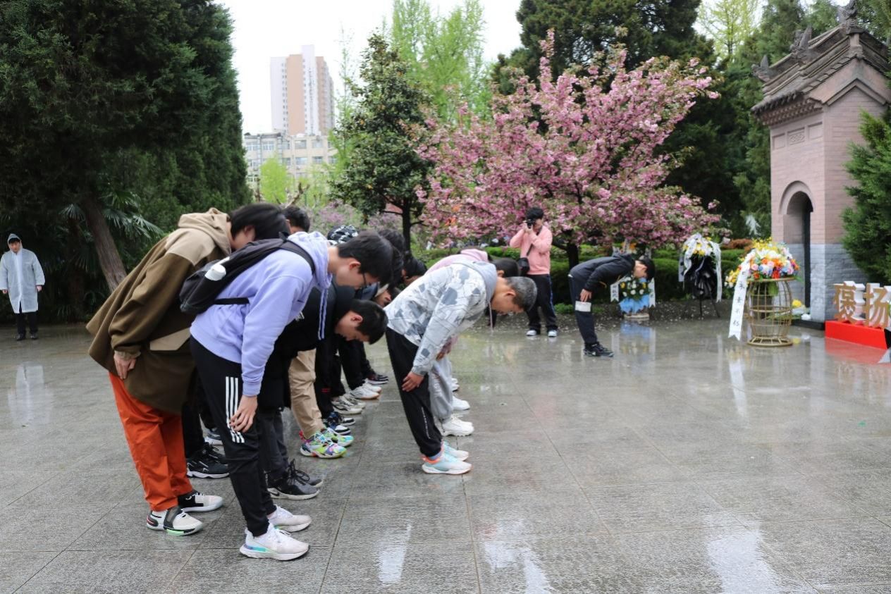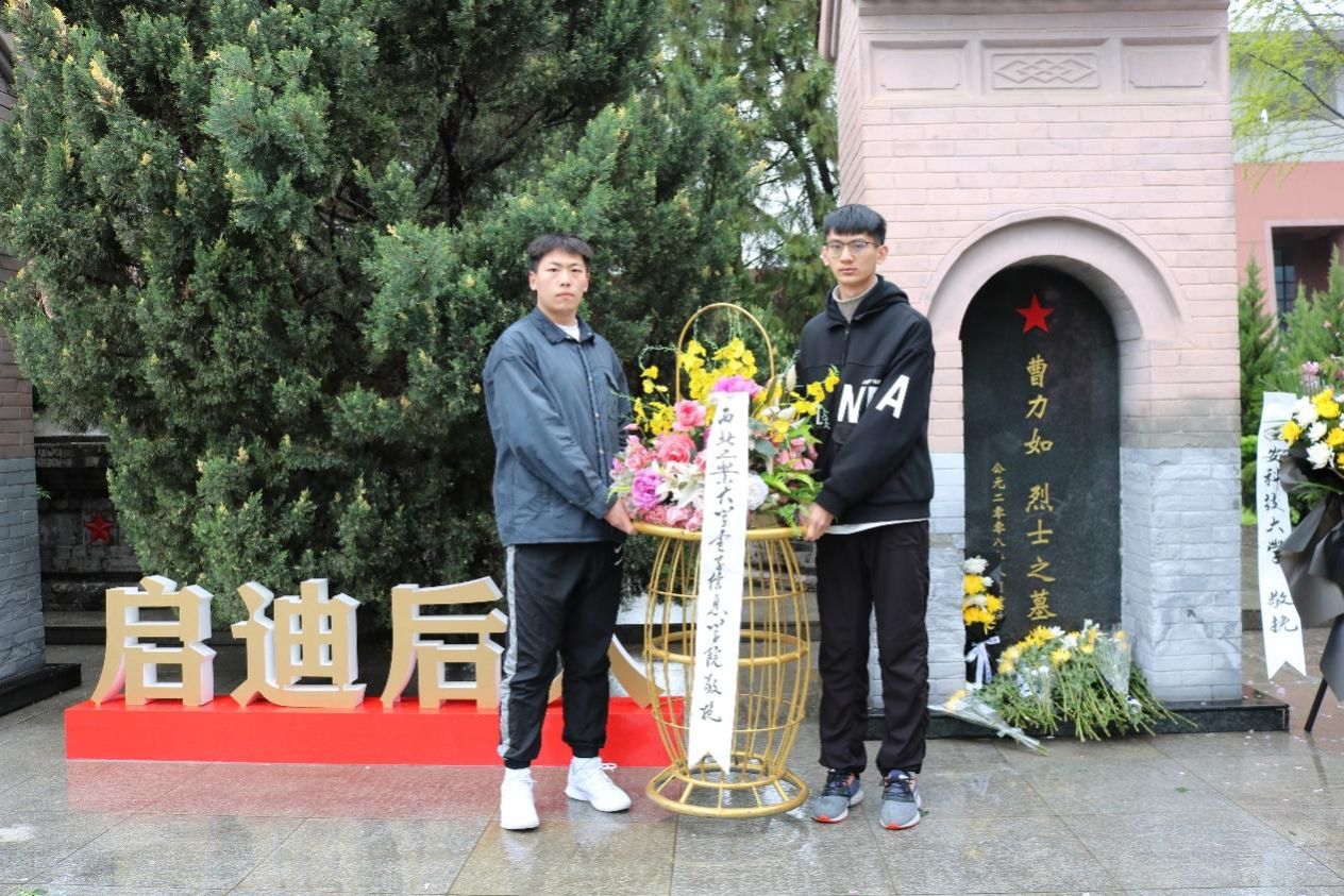 “杏花零落清明雨”,黑云低垂、细雨轻寒。清晨,全体同学怀着崇高的敬意踏入庄严肃穆的西安烈士陵园,两侧青松夹道、翠柏高耸,眼前横亘着“人民英雄永垂不朽”的石碑,书写着英烈的光辉。在DL062208班班长、团支部副书记郑宏伟同学的主持下,祭扫仪式正式开始。烈士墓前,全班同学在细雨丝丝、寒风阵阵的意境中低头默哀,接受烈士英魂的洗礼。其次,员工代表李东昊、李想同学向烈士敬献花篮、整理挽联,以表达对先烈的哀思。然后,全体同学重温了入团誓词,声音铿锵、意志坚定,心中回响着同学们入团时的初心和献身共产主义事业的决心。最后,同学们再次向烈士行三鞠躬礼。“人生自古谁无死,留取丹心照汗青。”仪式虽结束,但大家对烈士的崇敬和追思却深深烙在心中,英烈的姓名和事迹也将在青史上熠熠生辉,千古传颂。