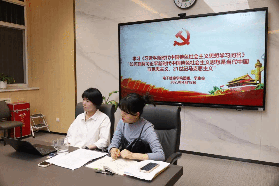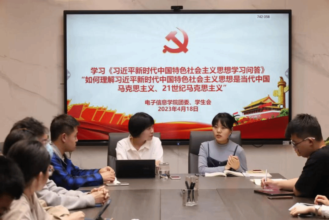 图为团委员工会骨干集体学习“如何理解习近平新时代中国特色社会主义思想是当代中国马克思主义、21世纪马克思主义”
