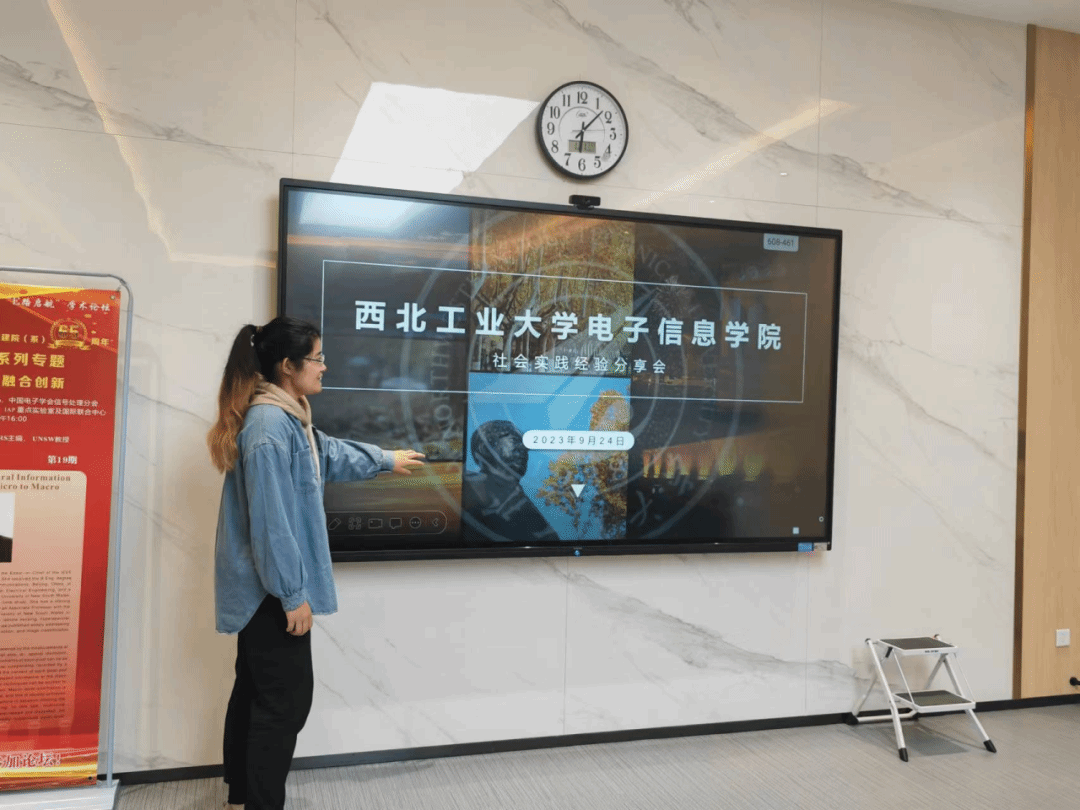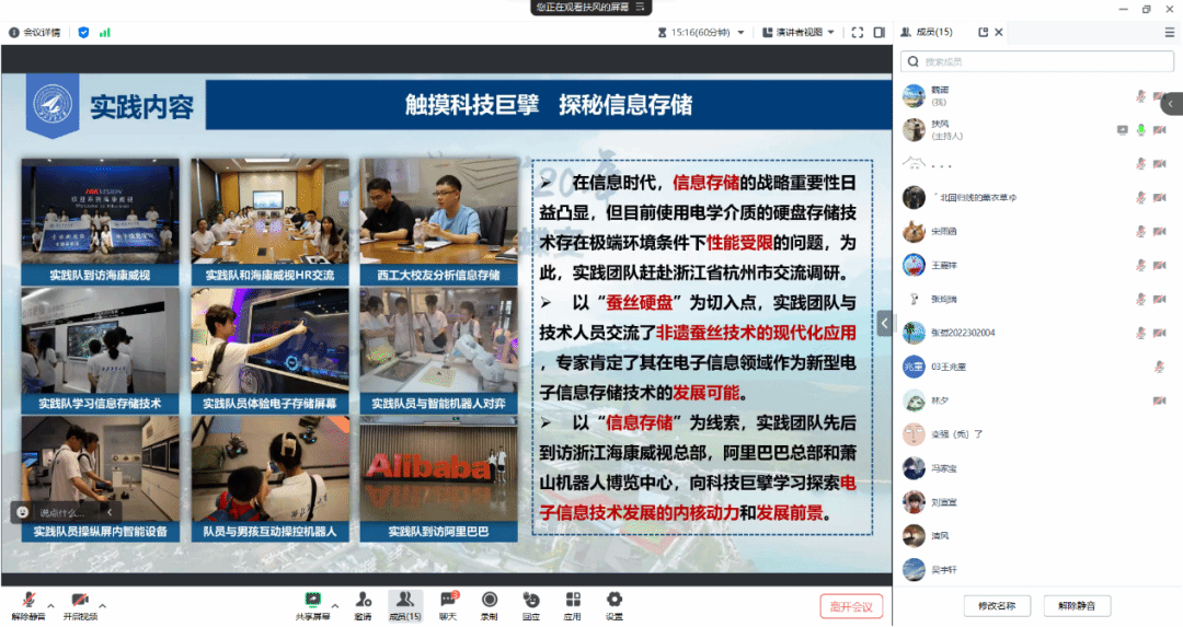 会议由范依涵同学主持,在简单介绍了公司社会实践的基本情况后,3位在刚结束的暑期社会实践中取得优异成果的同学为2023级新生分享社会实践经验。