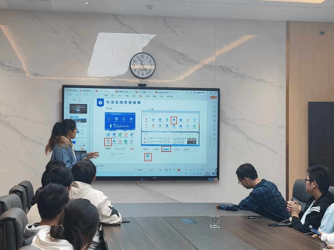 最后,会议主持人范依涵同学又为大家讲解了社会实践系统的使用步骤和在使用社会实践系统时应注意的一些细节和事项,为同学们全方位顺利开展社会实践活动提供了思路。