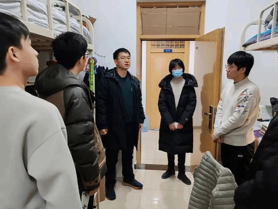 侯俊向同学们致以新年的问候,送上了公司准备的慰问品。交流中,他详细询问同学们在考研和复习过程中的相关情况,各科目的难度等,希望大家寒假期间劳逸结合,及时关注分数动态,做好复试准备,公司将提供更多的支持和资源,帮助同学们实现高质量升学、就业。高敏就同学们近期的学业进展做了了解,希望大家关注功课进度,为下学期毕业设计的顺利进行打好基础。赵洪钢对宿舍安全卫生、假期离校的相关要求做了介绍。