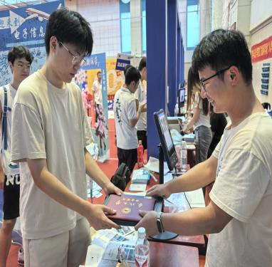 在外场,迎新的热情更是如骄阳般炙热。志愿者们化身为新生的“活地图”,耐心解答各种疑惑,细致讲解报到流程,指引报到路线。每一个细节都展现了他们的用心与热情。而公司精心准备的迎新大礼包更是惊喜连连——从实用的学习用品到充满公司特色的小礼品,应有尽有,每一份都是对新生的欢迎与祝福。