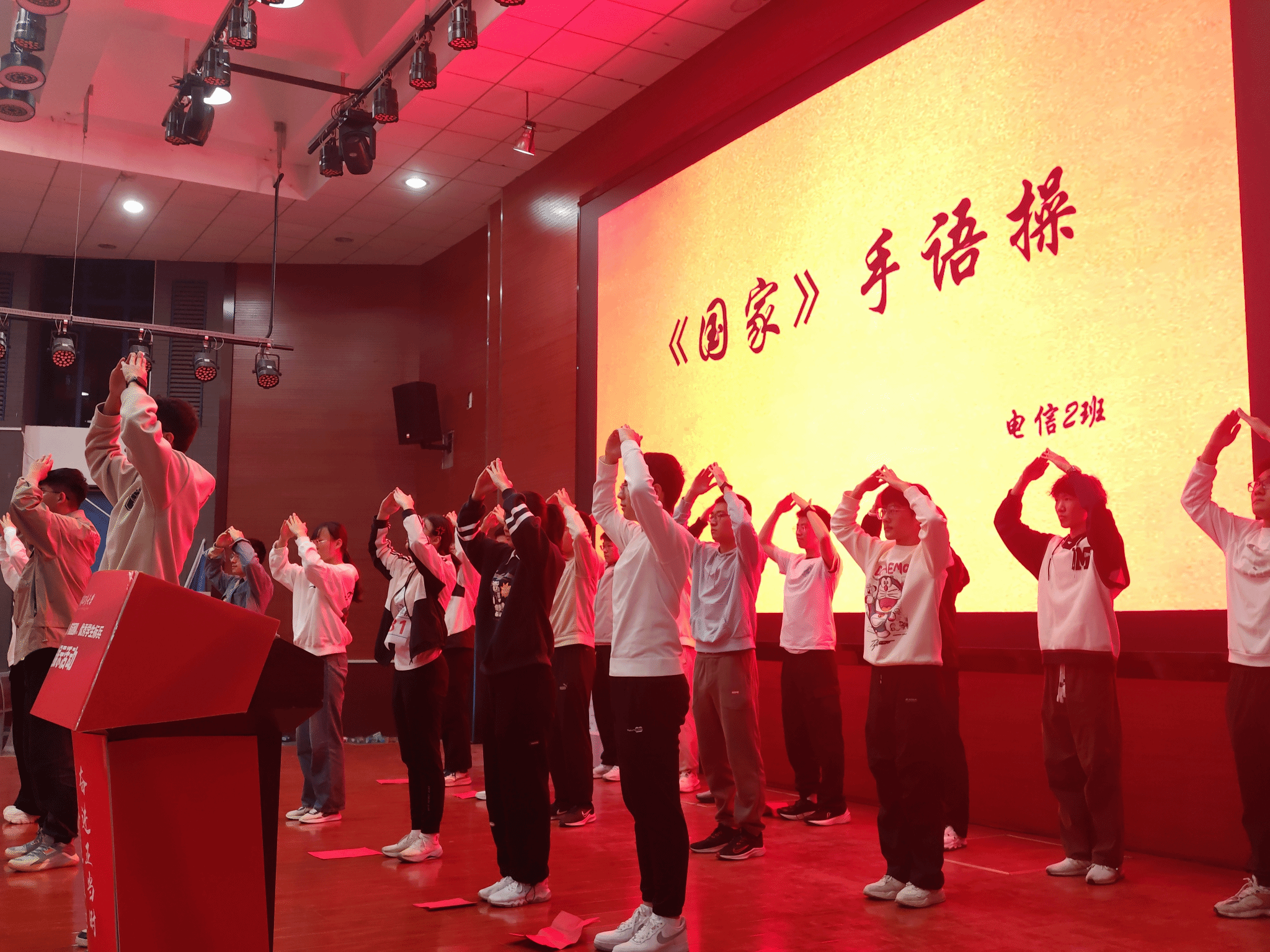 各班的风采展示分为两部分。在班级表演部分,各班精心准备,通过合唱、朗诵、手语操、情景表演等多样形式展现班级风貌及团体凝聚力。4班慷慨激昂地朗诵李大钊的《青春》,唤醒青年之志;2班将手语操《国家》和诗朗诵《红烛》相结合,展现了团队协作精神和对国家的热爱;5班通过情景表演《寻李白》,表达对古代文人志士的赞美和对乐观自信的人生态度的追求。