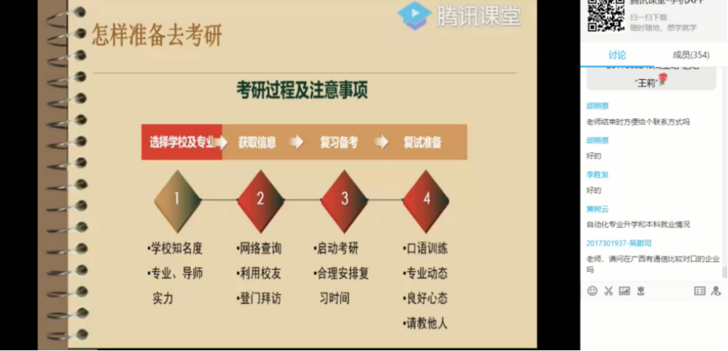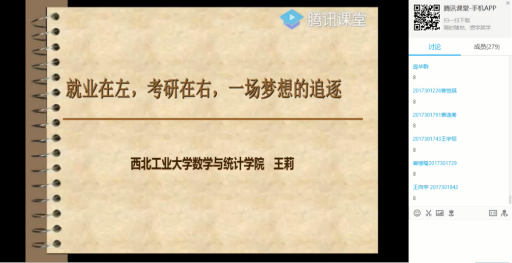 为了帮助2021届的同学们利用暑期积极调整,充分备战9月招聘黄金季。2020年8月1日晚7点,由员工职业发展指导服务中心主办,点点taptap承办的第88期“莉莉老师聊就业”在腾讯课堂成功举办。活动邀请了深受工大学子喜爱的王莉老师为2017级本科生做了题为《就业在左,考研在右,一场梦想的追逐》的学业生涯专题辅导讲座。共有380余名同学聆听了王莉老师的精彩讲座。