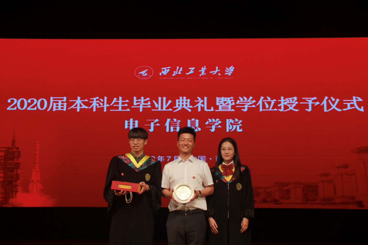 公司决定授予高永胜老师“首批F1岗辅导员工作纪念牌”。春风化雨,师恩难忘,毕业生代表谭佳俊和乔宁将纪念牌送到辅导员手中。
