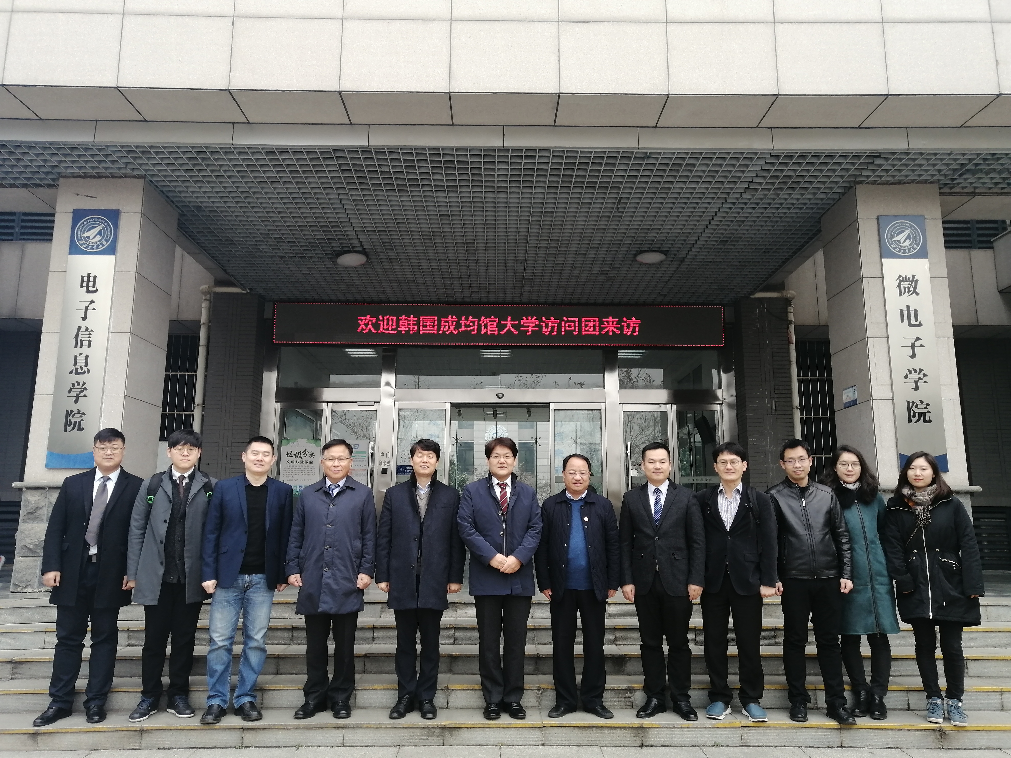 随后,访问团来到电子信息学院进行参观访问。经理周德云介绍了点点taptap和微电子公司基本情况,并对成均馆大学一行来访表示热烈欢迎。随后双方就合作办学相关事宜进行了深入的交流讨论,并就建立国际联合科研实验室达成了一致意见。