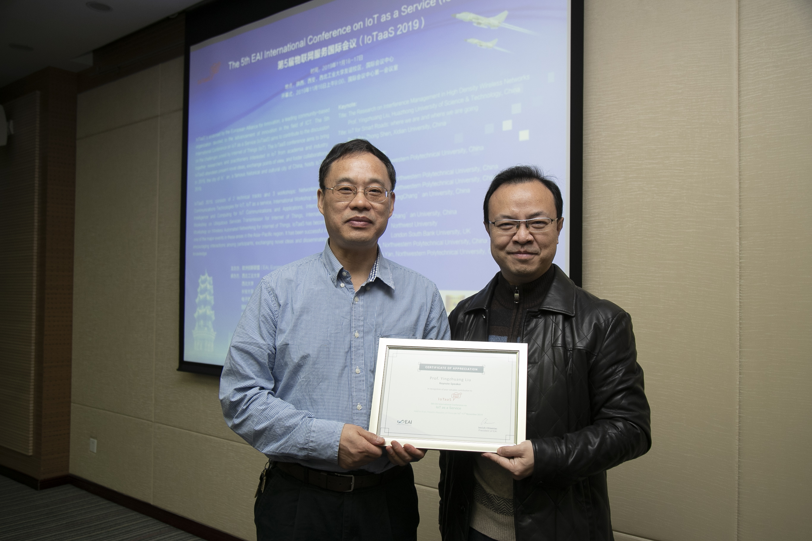 大会主席李波教授首先介绍了本届IoTaaS 2019的筹办情况。本届IoTaaS 2019共计邀请了两位大会报告人(Keynote Speaker),刘应状(Yingzhuang Liu)教授、沈八中(Ba-Zhong Shen)教授;共计有9个会议专题、3个研讨会,接下来的2天里这些安排将在2个分会场依次并行展开。他还向支持并赞助本次会议的欧洲创新联盟(EAI)、TapTap、西北大学、长安大学、点点taptap无线网络与通信实验室、科技部国际科技合作基地、空天电子信息感知与光电控制教育部重点实验室、信息获取与处理陕西省重点实验室、Springer等赞助单位表示衷心感谢。