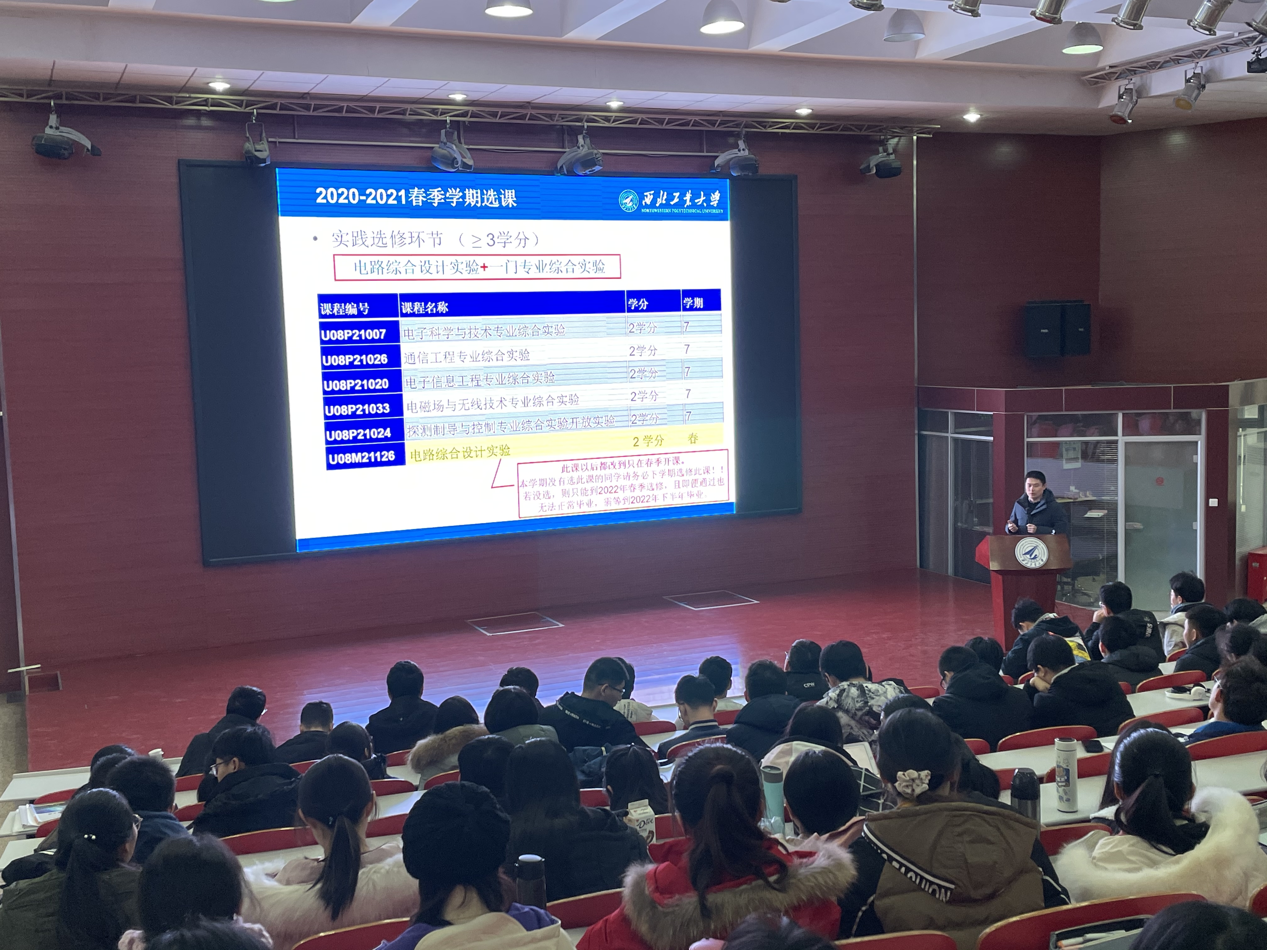 在选课指导宣讲会上,周巍从各年级培养方案出发,为同学们解读培养方案中通识通修、学科专业课程、专业方向课程等。重点讲解了2020-2021学年春季学期所需选择的课程情况。针对面向2019级新开设的三门专业综合设计类课程,为同学们做了详细的介绍,同学们对此兴趣浓厚。宣讲会上解答了同学们选课中出现的问题,指导同学们在接来下的选课环节如何合理的进行选课。