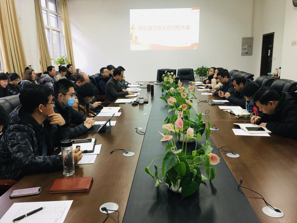 办公室15位工作人员分别结合2020年度各自岗位职责、重点工作开展情况等内容,逐一述职汇报。在盘点年度工作的同时,大家深刻总结反思,查找自身不足,并对下一年度的工作提出思考和建议。院领导及相关代表现场就述职汇报情况,进行评议打分。