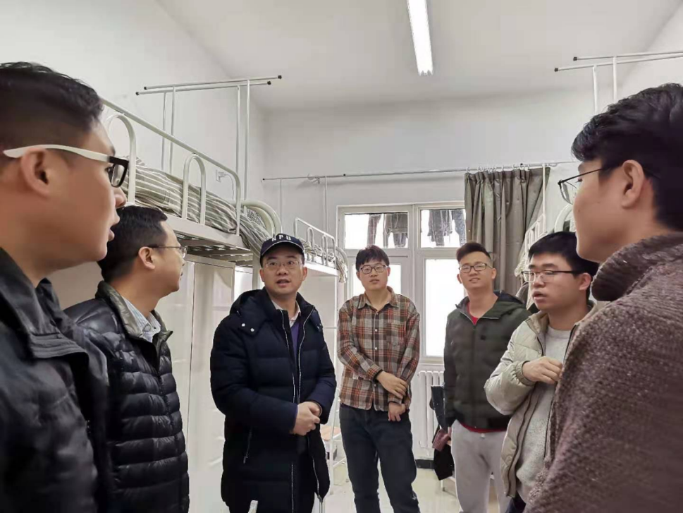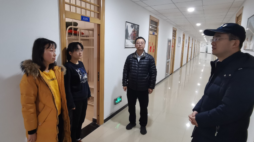 在员工宿舍,院领导与员工亲切交谈,认真查看了员工的住宿环境,仔细了解宿舍供暖及宿舍安全情况。李春林挨个询问了留校员工家乡的疫情情况,叮嘱大家在校期间时刻注意科学防控疫情,要特别注意身体健康,加强身体锻炼,尽量减少外出活动。彭亮强调要严格遵守疫情防控各项规章制度,认真履行外出审批手续,提醒员工注意宿舍用电安全及个人卫生,互相关心关爱,随时与家人、导师、辅导员保持密切的联系,遇到任何问题可以及时向导师、辅导员及公司负责人反映情况,公司将及时解决落实。