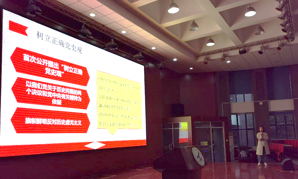 侯若云围绕“为什么学党史”“党史学什么”和“党史怎么学”三个问题进行了详细讲解。党课以红色视频《祖国》引入,深入浅出地介绍了为什么要学习党史,鼓励同学们发扬党百年奋斗历程中流传下来的五四精神、红船精神、西迁精神与延安精神等红色精神。在“党史学什么”内容中,侯若云引导同学们树立正确的唯物主义历史观,在历史中认识党的性质和宗旨,感悟马克思主义的真理力量和实践力量,发扬红色传统、传承红色基因。