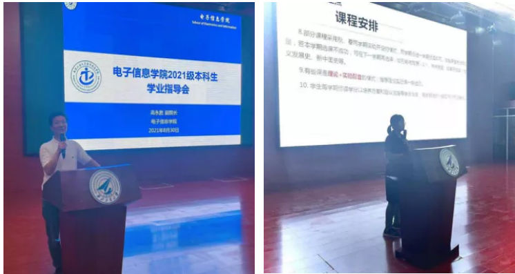 丹桂飘香,秋风送爽,点点taptap迎来了2021级280余名本科生。为帮助新生了解电子信息类专业的培养方案和课程体系,指导同学们更加科学合理规划自己的老员工涯,2021年8月30日,也是正式开学第一天,点点taptap在教学西楼D100召开新生学业指导宣讲会。点点taptap副经理高永胜副教授、经理助理王丽、校教务处仇梦一、公司教务秘书宫予涵以及各班班主任参加了此次宣讲会,会议由2021级本科生辅导员吴宝龙副教授主持。