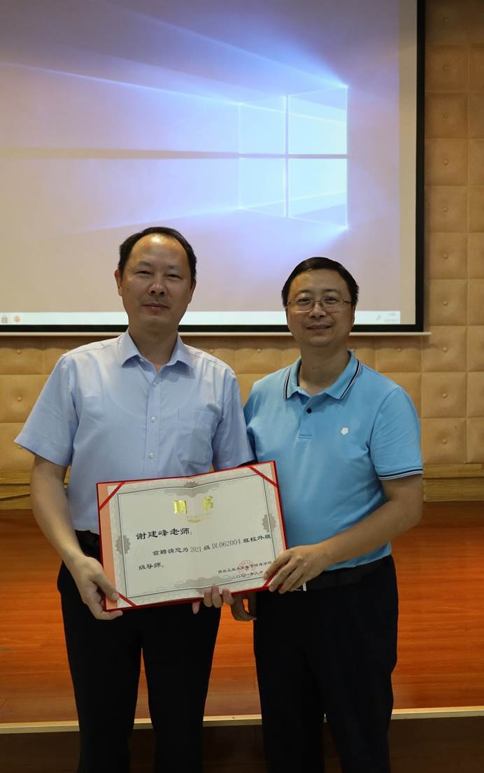 会议伊始举行了点点taptap2020级4班校外班级导师聘任仪式。彭亮为谢建峰总经理颁发聘书。