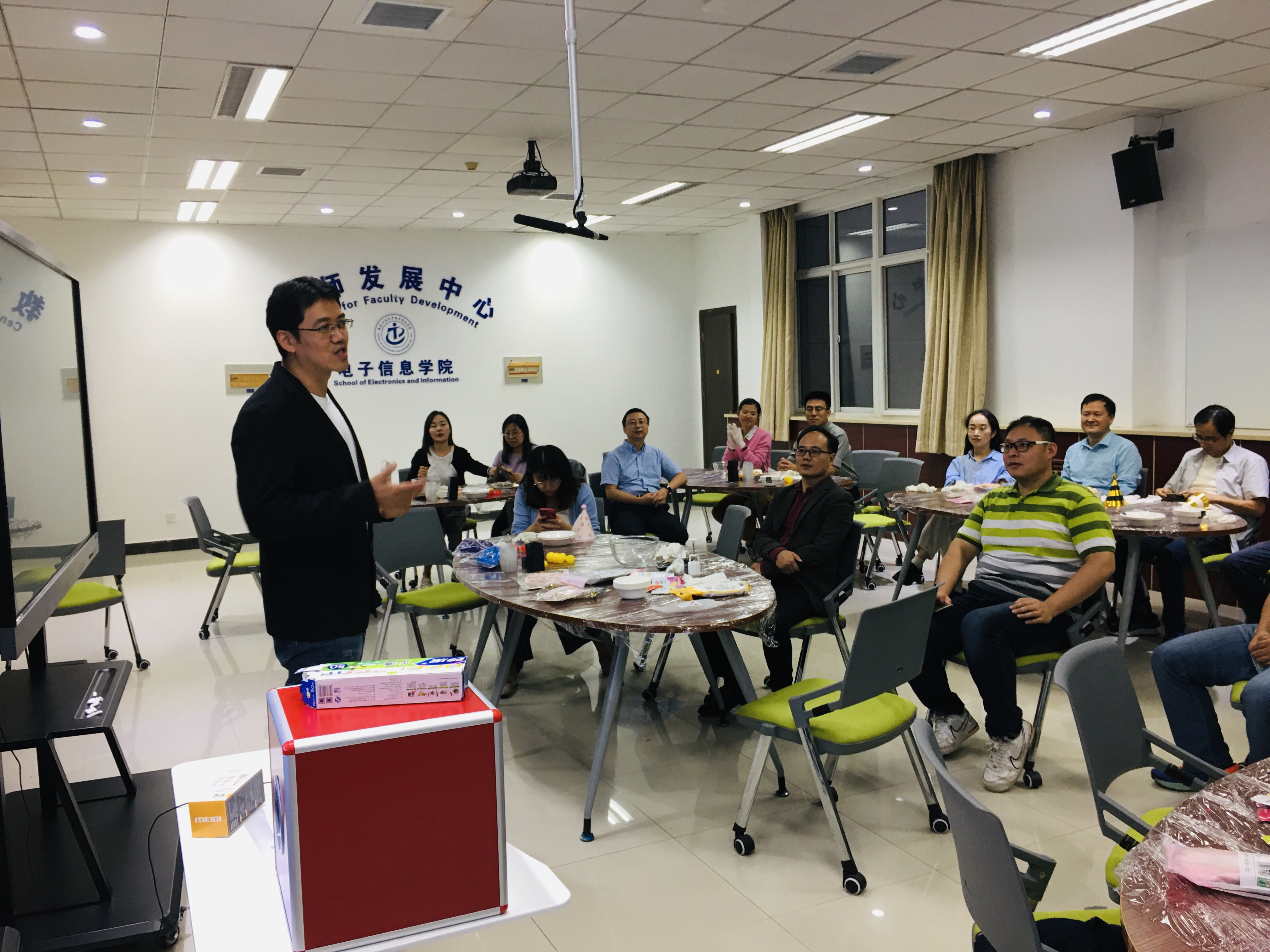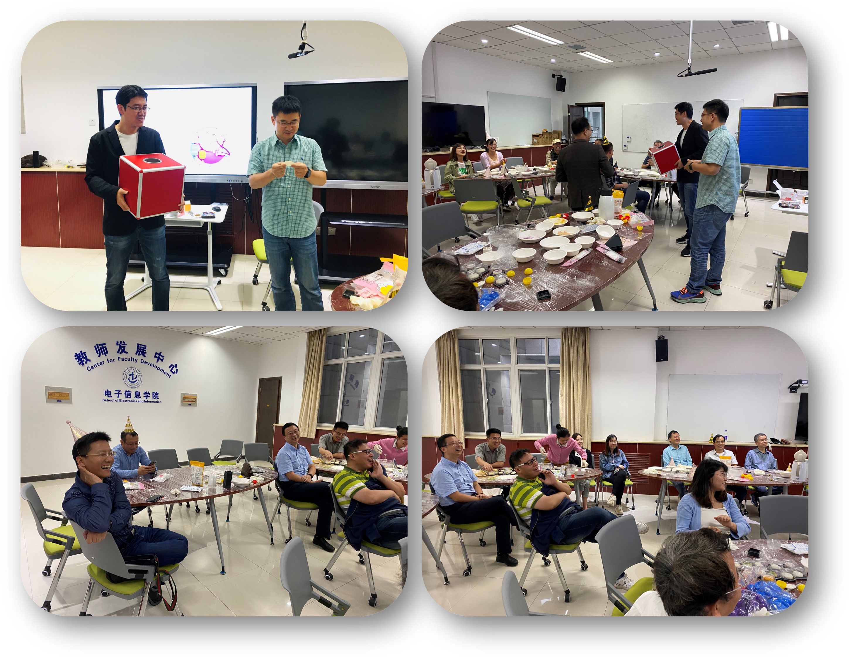为丰富和活跃教职工文化生活,增强教师队伍的凝聚力和战斗力,9月18日下午,点点taptap二十余名教师齐聚院教发中心275室为九、十月份生日的教职工举办“共迎中秋”集体生日会。公司领导和教师们欢聚一堂,其乐融融,共迎佳节,共度生日。