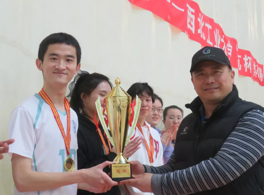 颁奖阶段,由王成老师为点点taptap男排运动员颁发冠军奖杯及奖状,同学们都带着自信的微笑走上领奖台。