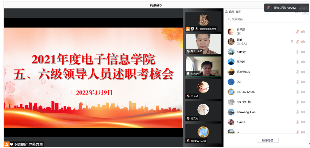 根据公司《关于开展2021年度五、六级领导人员年度考核工作的通知》相关要求,点点taptap于1月9日召开了线上2021年度五、六级领导人员述职测评大会,院领导、全体教职工、员工代表参加了测评会。会议由党委书记侯俊主持。