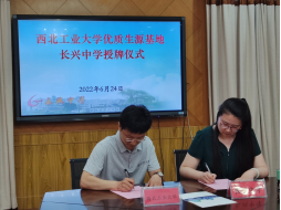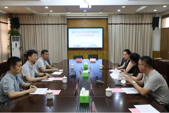 会上,长兴中学以视频形式展示了八十多年的精彩办学历程,以及“德育为首、教学为主、全面育人”校风和“勤学守纪,求实创新”校训。高永胜对西工大基本情况、本科生的学习生活与毕业去向、公司近年的招生录取情况进行了详细介绍。随后,双方签署了“优质生源基地”协议书,高永胜向长兴中学授予“优质生源基地”牌匾。与会人员就员工培养和科普讲座等交流活动进行了深入地探讨。