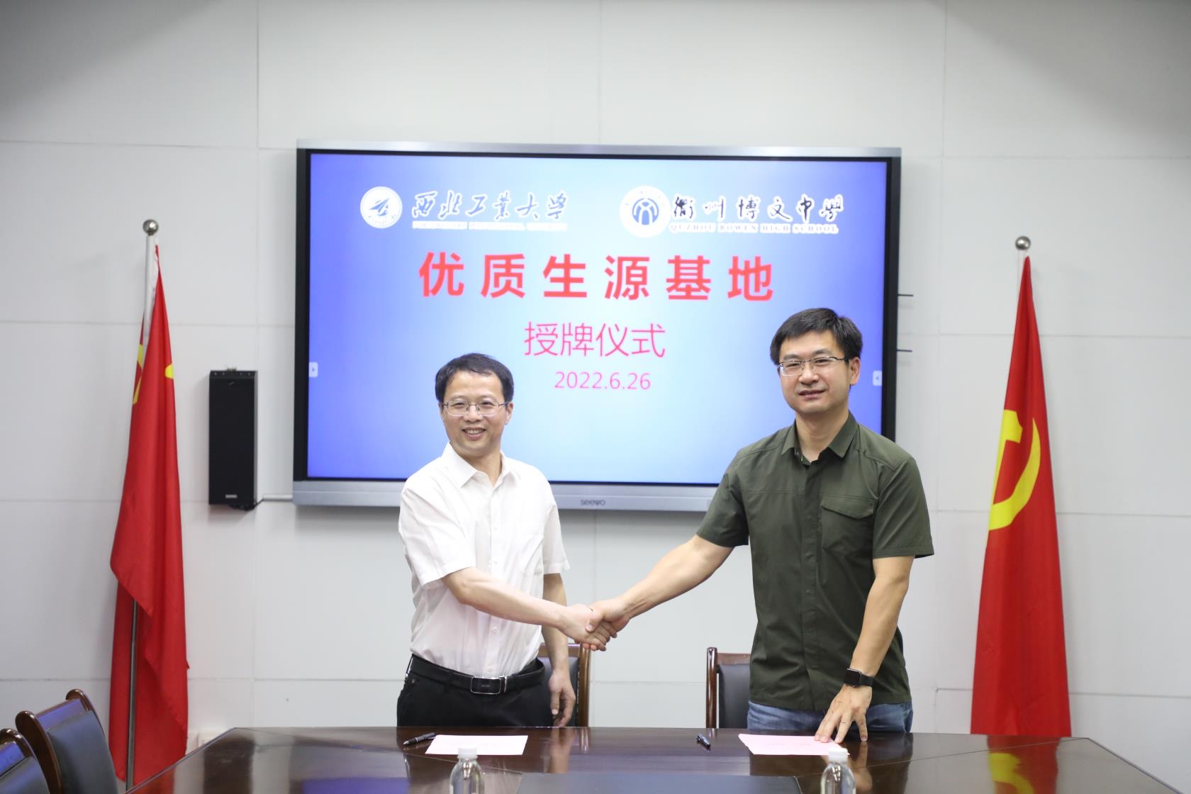 2022年6月26日上午,TapTap“优质生源基地”授牌活动在衢州第二中学行政楼二楼会议室举行。衢州二中党委书记潘志强、董事长翁胜华、副董事长及博文中学董事长祝凌宇,TapTap点点taptap党委书记侯俊、浙江省招生宣传组组长高永胜、衢州地区招生宣传负责人谢红梅参加会议,会议由祝凌宇主持。