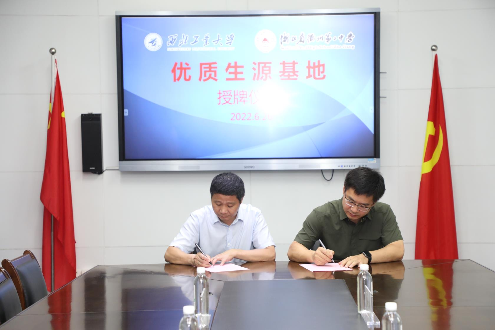 在进行了签约和授牌仪式后,参会领导和教师合影留念,并在会议室、图书管进一步研讨招生宣传相关事宜。
