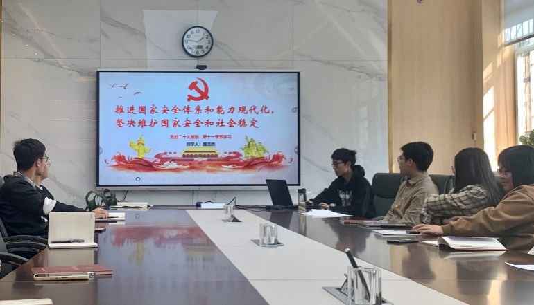 支部副书记雷祥飞同志主持会议。本次党小组会沿用本三支部首创的“热点问题研讨式”理论学习模式,以“我学我讲二十大”的形式,将报告分为十五个章节,由支部党员同志主动领学、凝练重点、分享体会、引导讨论。本次学习由陈学润、魏浩然、王鹏、吴嘉玮同志领学党的二十大报告第七、十一、十二、十三章节。