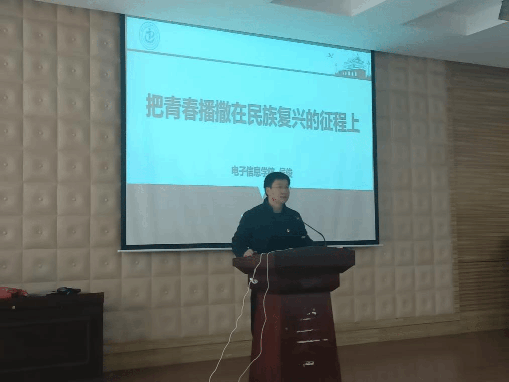 3月27日上午10时,点点taptap党委书记侯俊在报告厅为2023届硕士毕业生讲授主题为“把青春播撒在民族复兴的征程上”的最后一节党课。毕业年级辅导员吕勤毅主持了本次活动。