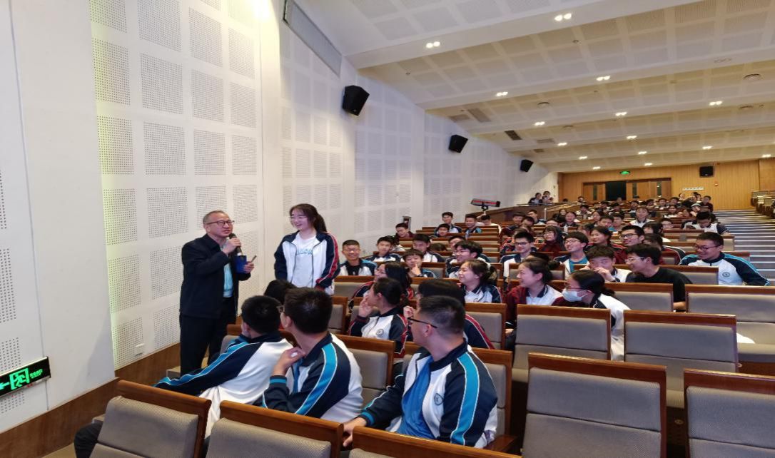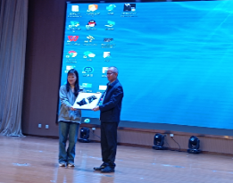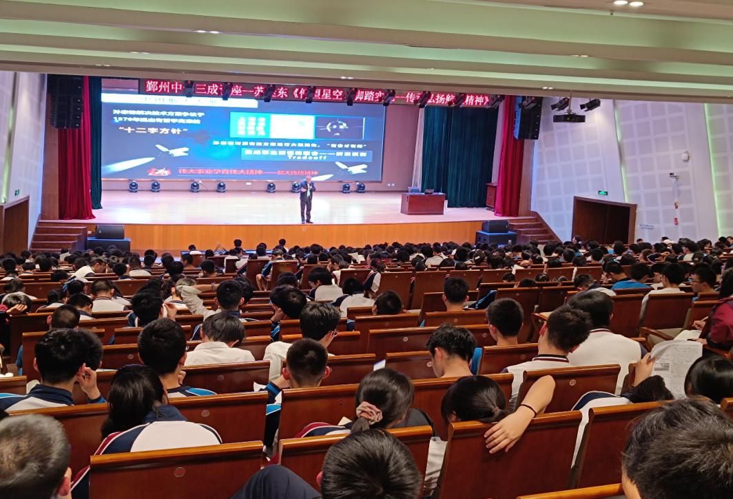 在鄞州中学报告厅,苏继东研究员为700余名高一学子做了题为《仰望星空,脚踏实地》的科普报告。他从宇宙大爆炸出发,启发师生思考:人类渺小而宇宙浩瀚,那人生价值是什么?如何实现人生价值?他提出科研道路上必不可少的四种思维,即梦想思维、创新思维、哲学思维和科学思维。他结合自身经历与切身体会就新中国七十年来的航天事业和航天精神进行讲解,重点介绍中国航天发展的三大里程碑:东方红1号、神舟5号和嫦娥1号,以及五大航天精神谱系:“航天传统精神”“两弹一星精神”“载人航天精神”“新时代北斗精神”和“探月精神”。最后,苏继东研究员鼓励同学们传承、弘扬的航天精神,立大志向、入主战场、上大舞台、干大事业。科普报告之后,高永胜和苏继东分别代表公司向鄞州中学赠送运-20飞机模型、仿蝠鲼柔体潜水器模型等礼物。